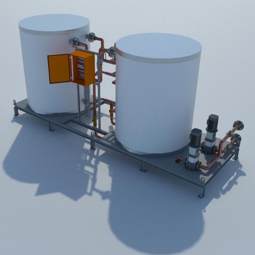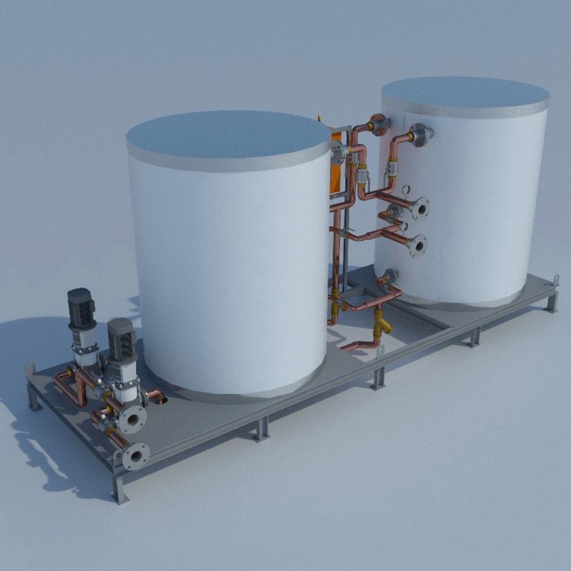 Packaged hot water plant using a wood-fired boiler and heat accumulator tanks for climate control in tobacco drying warehouses. The system is fully automated with remote access and monitoring to improve efficiency and consistency.
